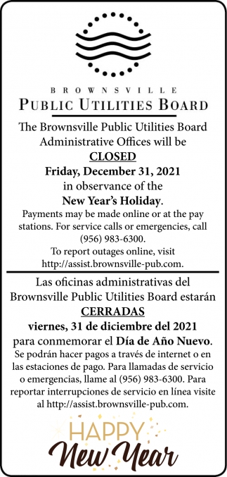Nov 24, 2021. Brownsville Public Utilities Board Government Ads from Brownsville Herald