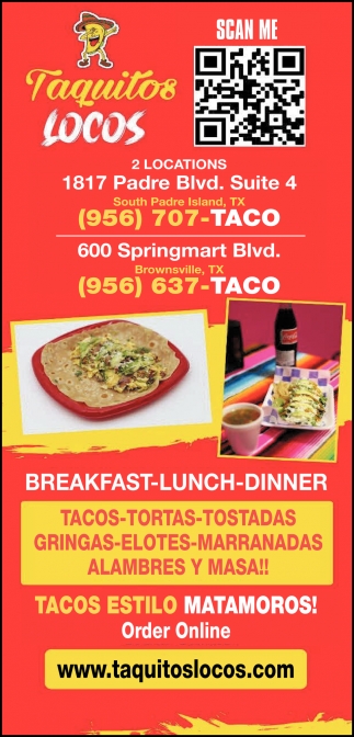 Ads for Taquitos Locos in South Padre Island, TX