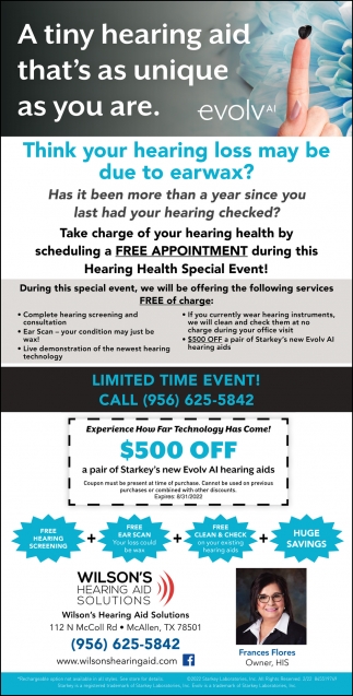 Ads for Wilson's Hearing Aid Solutions in Mcallen, TX
