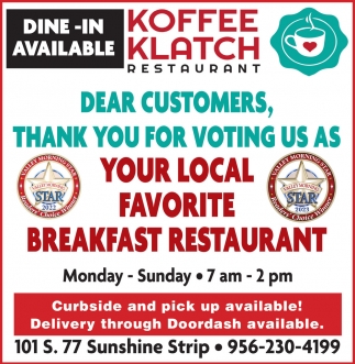 Feb 22, 2024. Koffee Klatch Restaurant Restaurants Ads from Valley Morning Star
